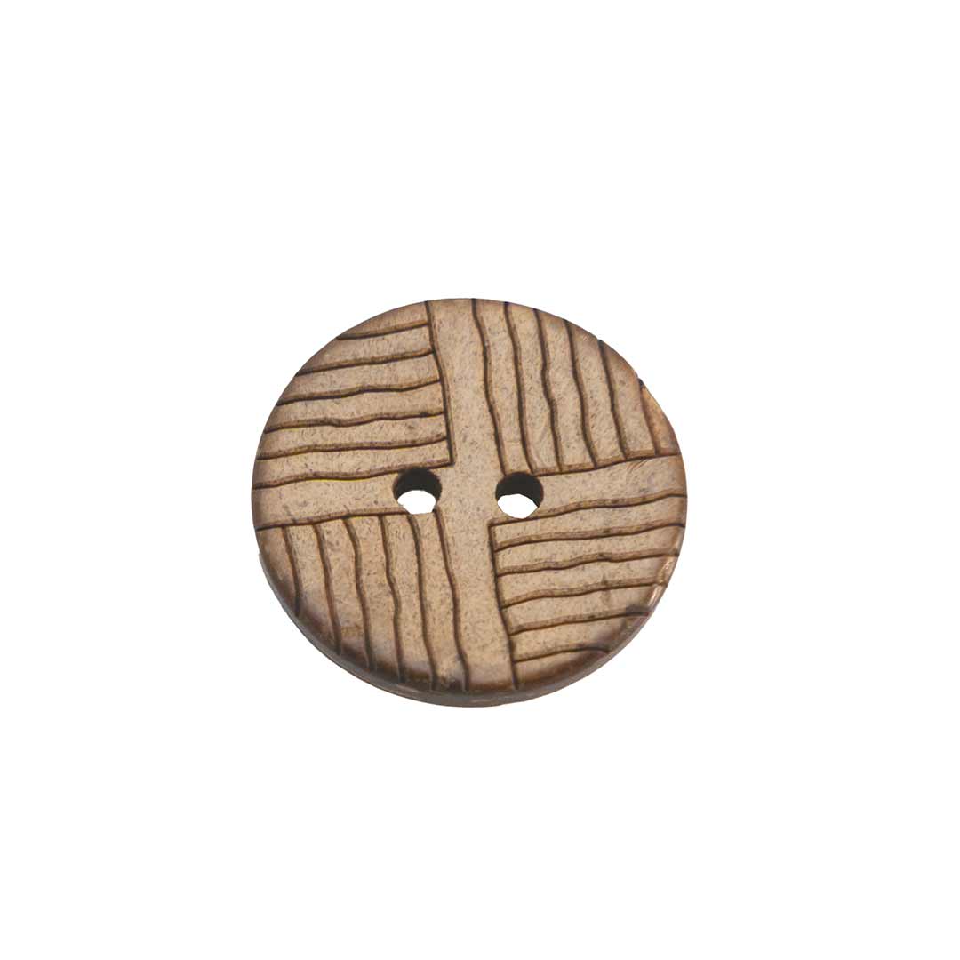 Skapa en varm och naturlig känsla i dina plagg med denna dekorativa knapp i kokos. Med en diameter på 18 mm blir den en tydlig och stilfull detalj som passar perfekt när du vill att knapparna ska synas lite extra.