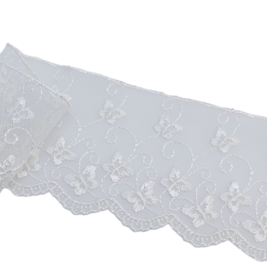 En fin nylonspets med fjärilsmotiv 70 mm vit