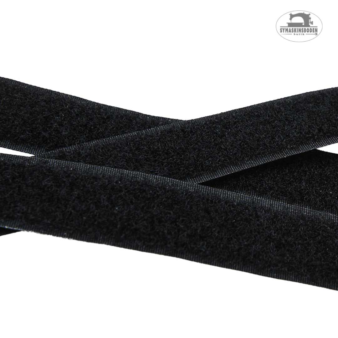 20 mm brett svart kardborreband på metervara, mjuka sidan