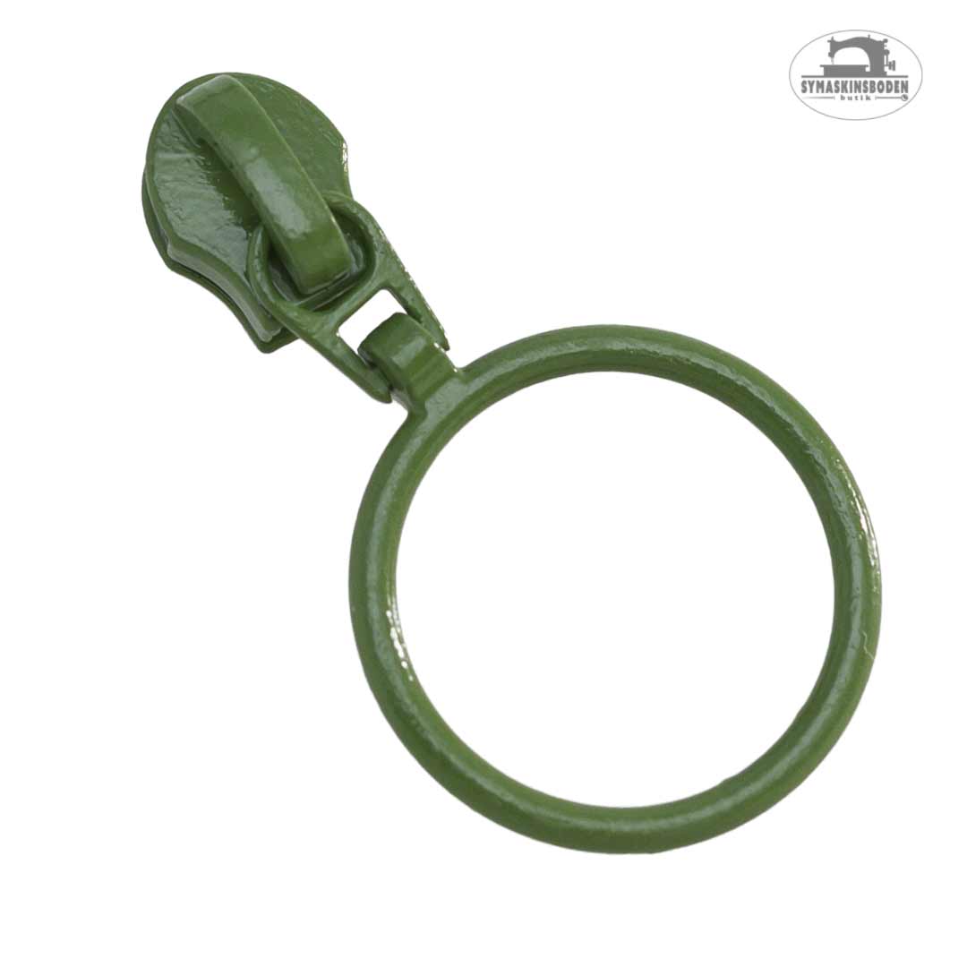 Kläpp med ring till spiralblixtlås på 4mm (#3) olivgrön