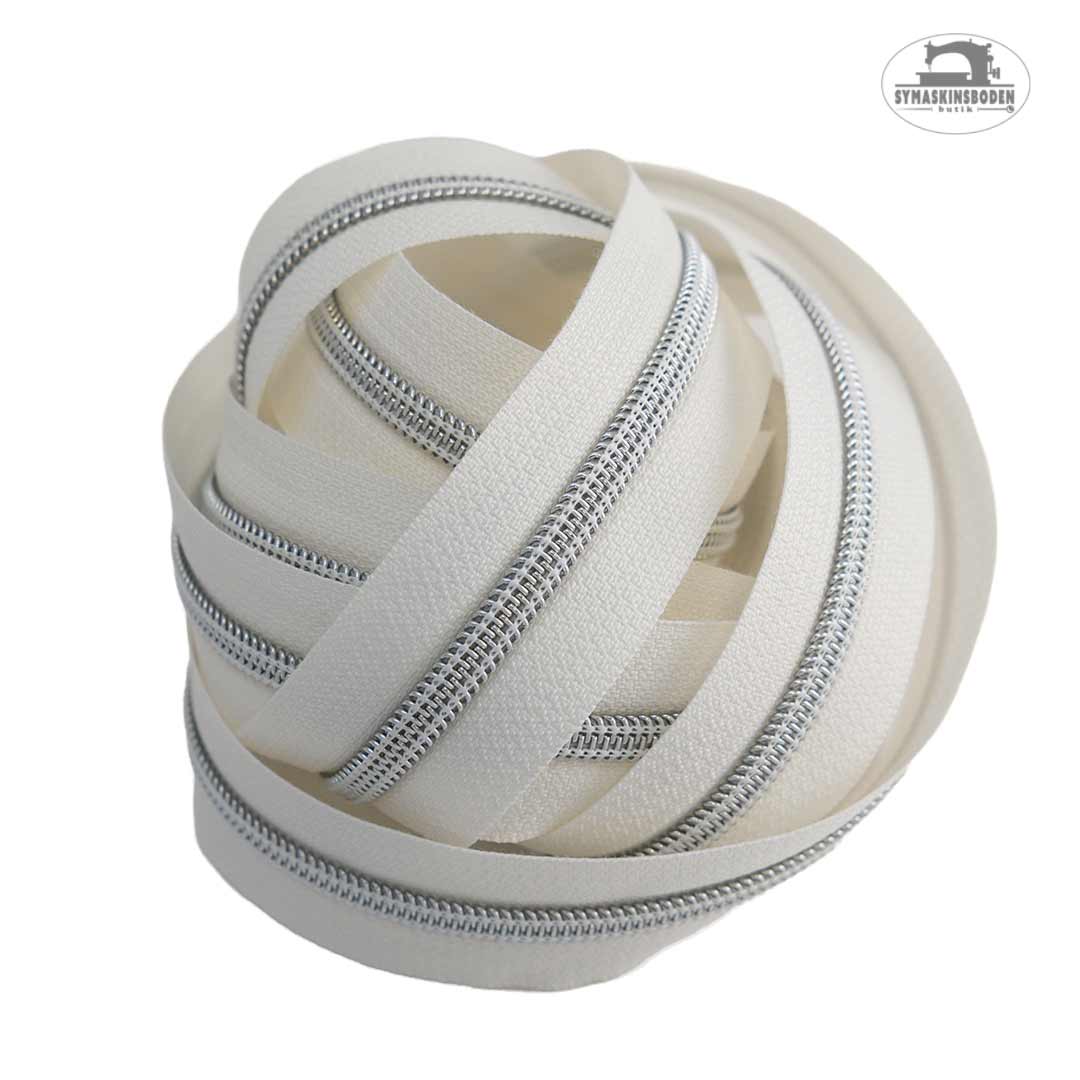 Metallic färgat spiralblixtlås (#5) 6 mm offwhite silver