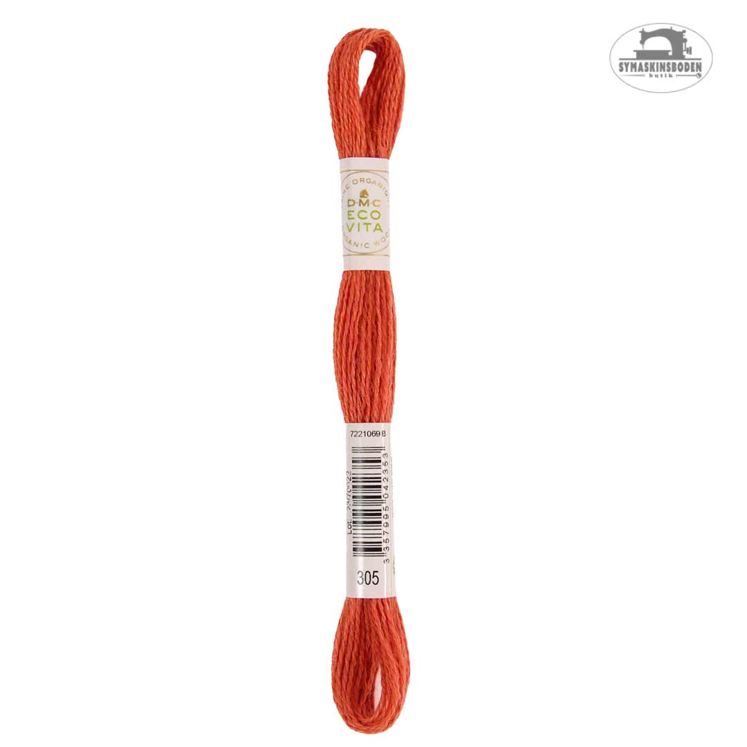 Brodergarnet är gjort av ekologisk och mulesingfri ull och är naturfärgat. Just den här färgen är gjord med krapprot. Färgbaden kan variera från gång till gång.