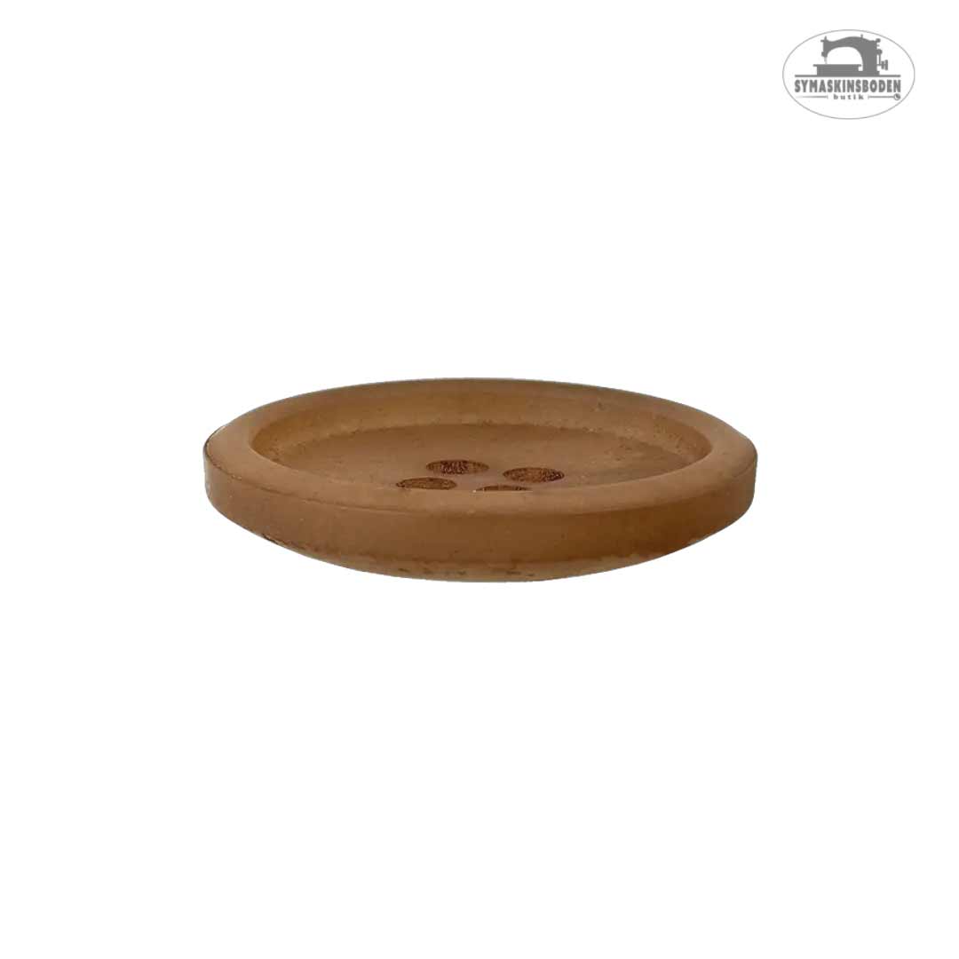 Union Knopf har tagit fram den här hållbara och estetiskt tilltalande knappen, skapad för att förena funktion med miljömedvetenhet. Den är tillverkad av bland annat återvunnet papper, material valt för att minska resursförbrukningen och främja återvinning. Knappen har en livfull beigebrun färg med lite skiftningar som tillför karaktär till vilken design som helst. Knappens yta är slät med en matt finish och har en markant kant på framsidan.