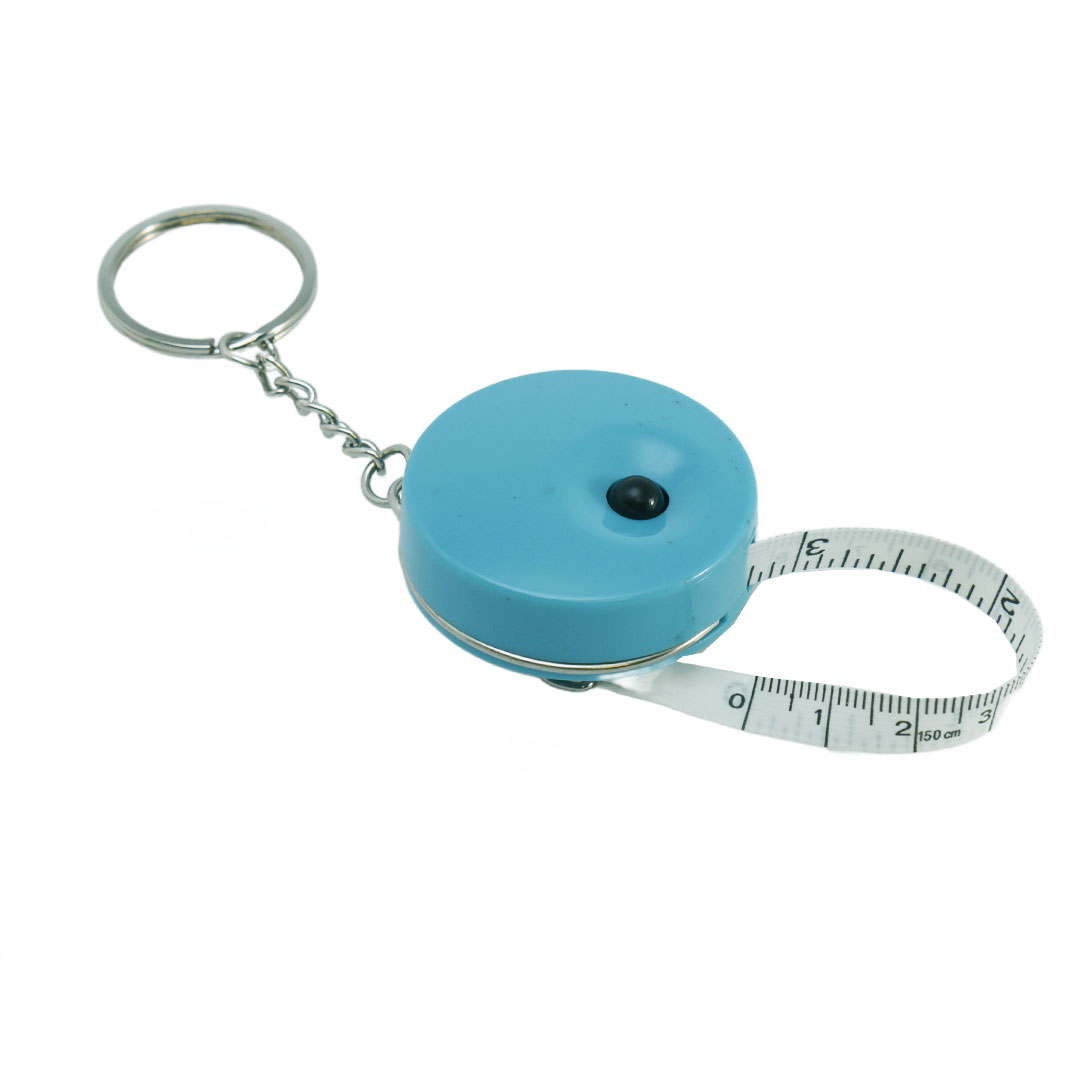 Litet och praktiskt måttband som kan fästas på nyckelknippan eller tas med i väskan. Dras det ut helt är längden 150 cm eller 60 inches. Måttbandet stannar utdraget tills du trycker in den svarta knappen och rullar då ihop sig av sig själv.