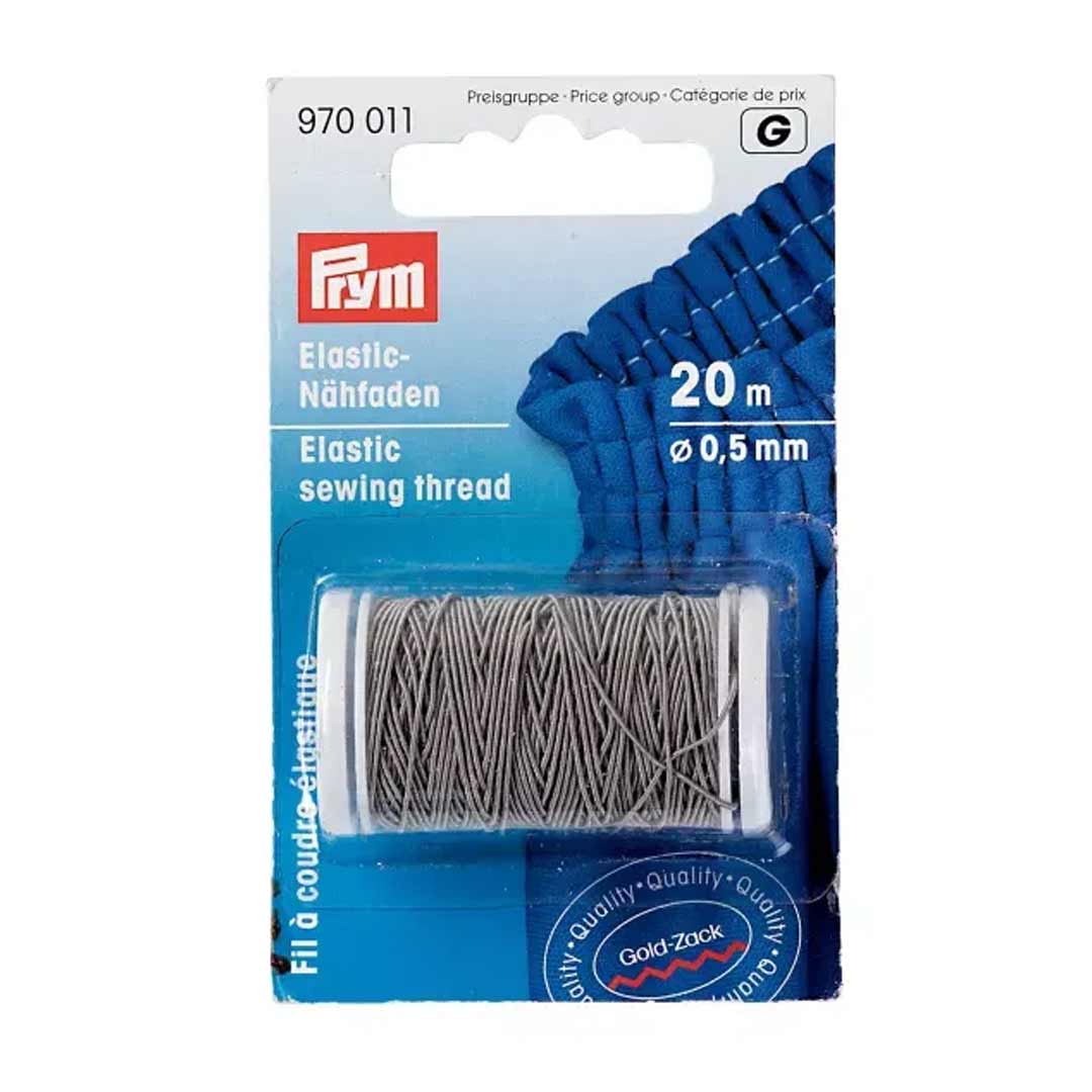 Elastisk sytråd från Prym i diskret grå nyans. Tråden har en diameter på 0,5 mm och är särskilt framtagen för att sy smock på symaskin. Den används som undertråd och lindas för hand på undertrådsspolen för bästa resultat.