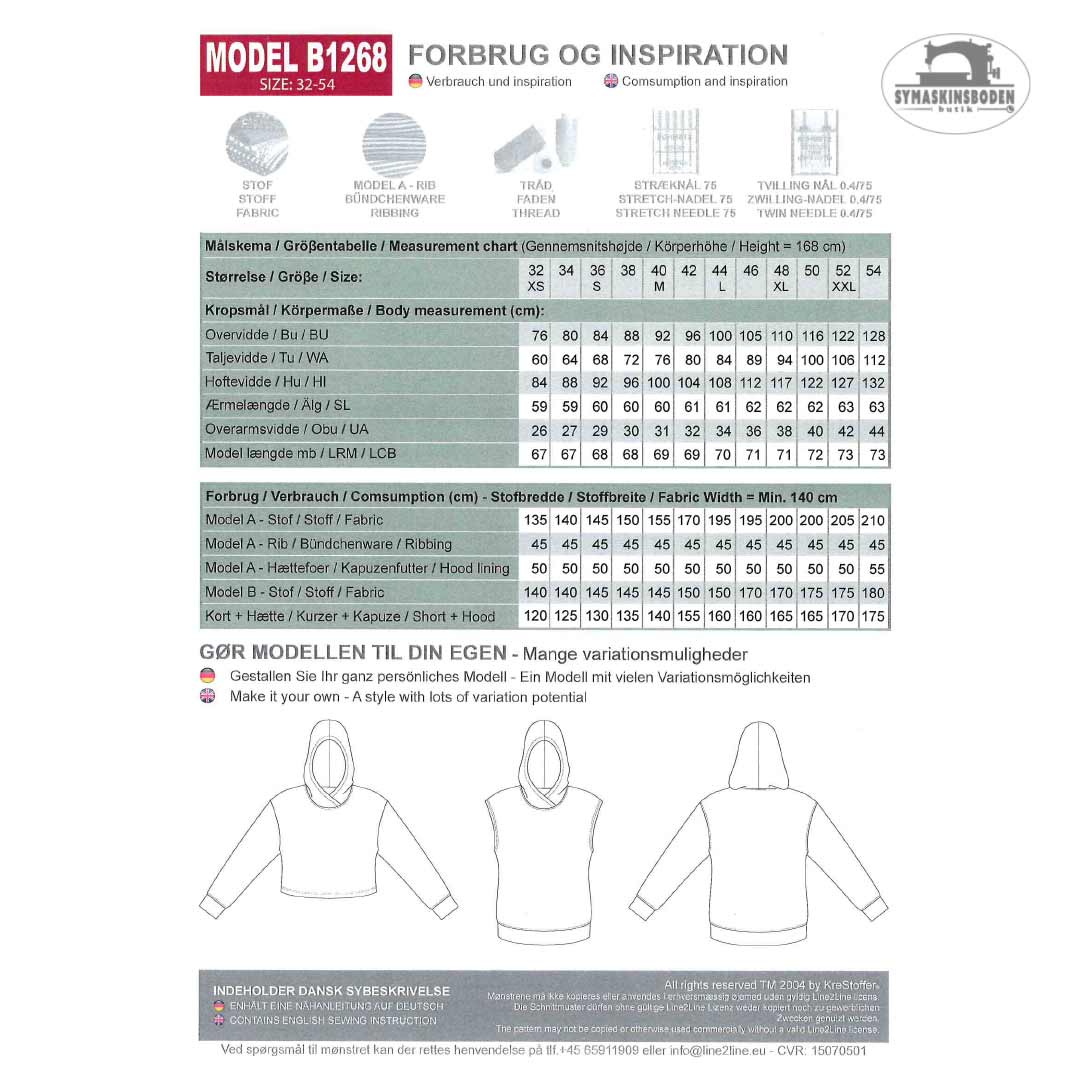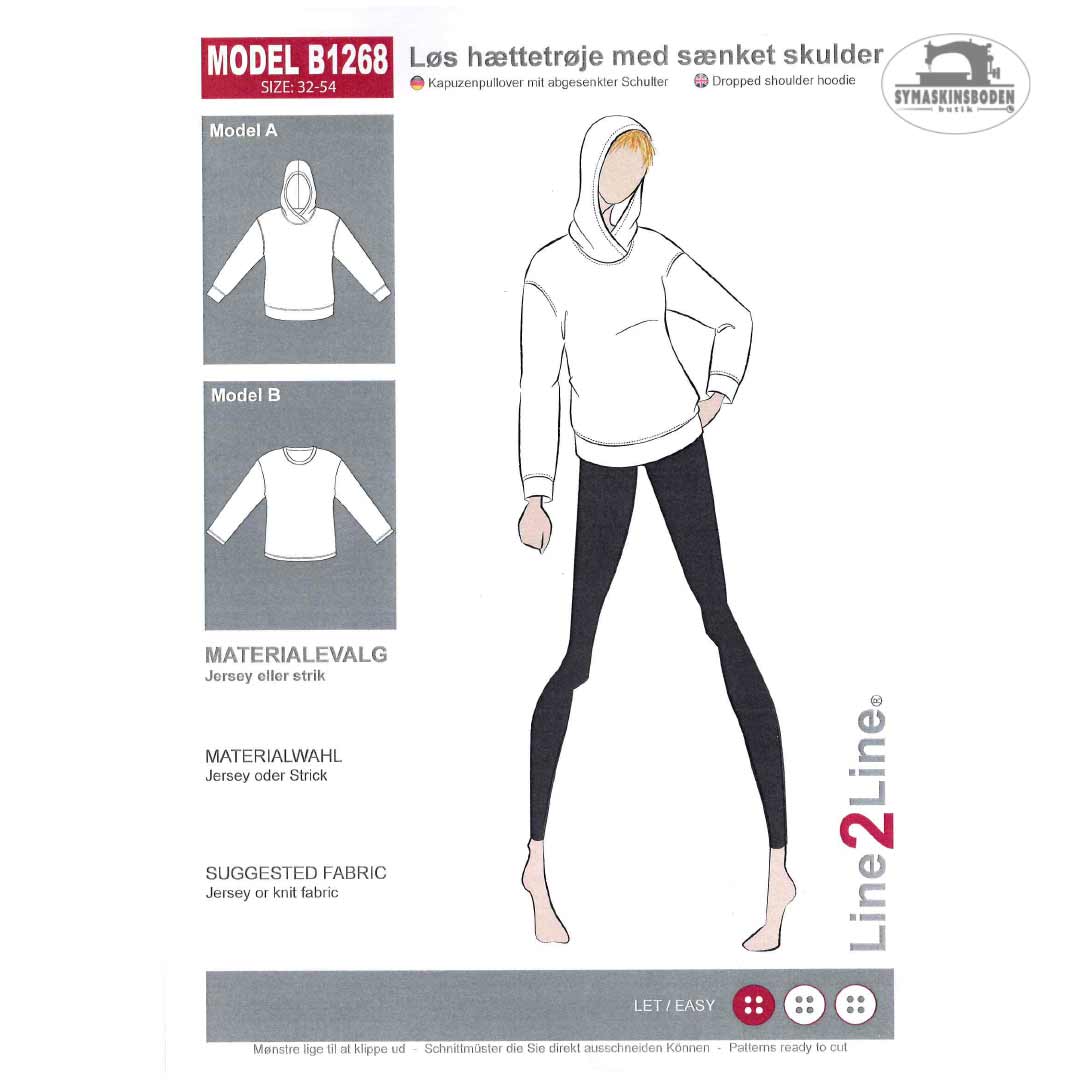 Sömnadsmönster från Line2Line. Modeller i olika svårighetsgrad. Mönstren har tips på idéförändringar. All text är på danska, engelska och tyska. En enklare sybeskrivning medföljer mönstret.