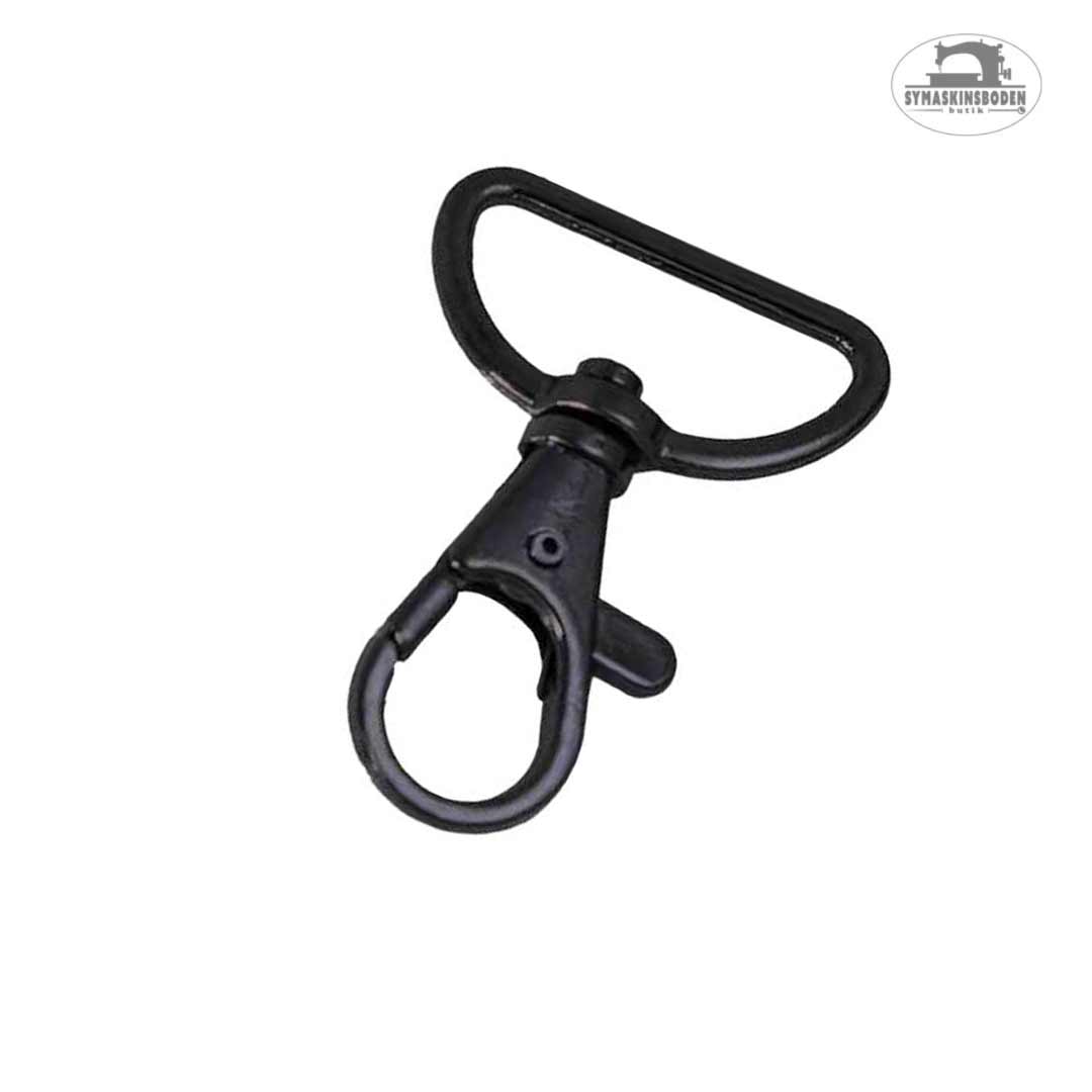 Stilren, svart karbinhake i metall till handtag, axlremmar och band vid sömnad av väskor m.m. Passar bandbredd på 25 mm.