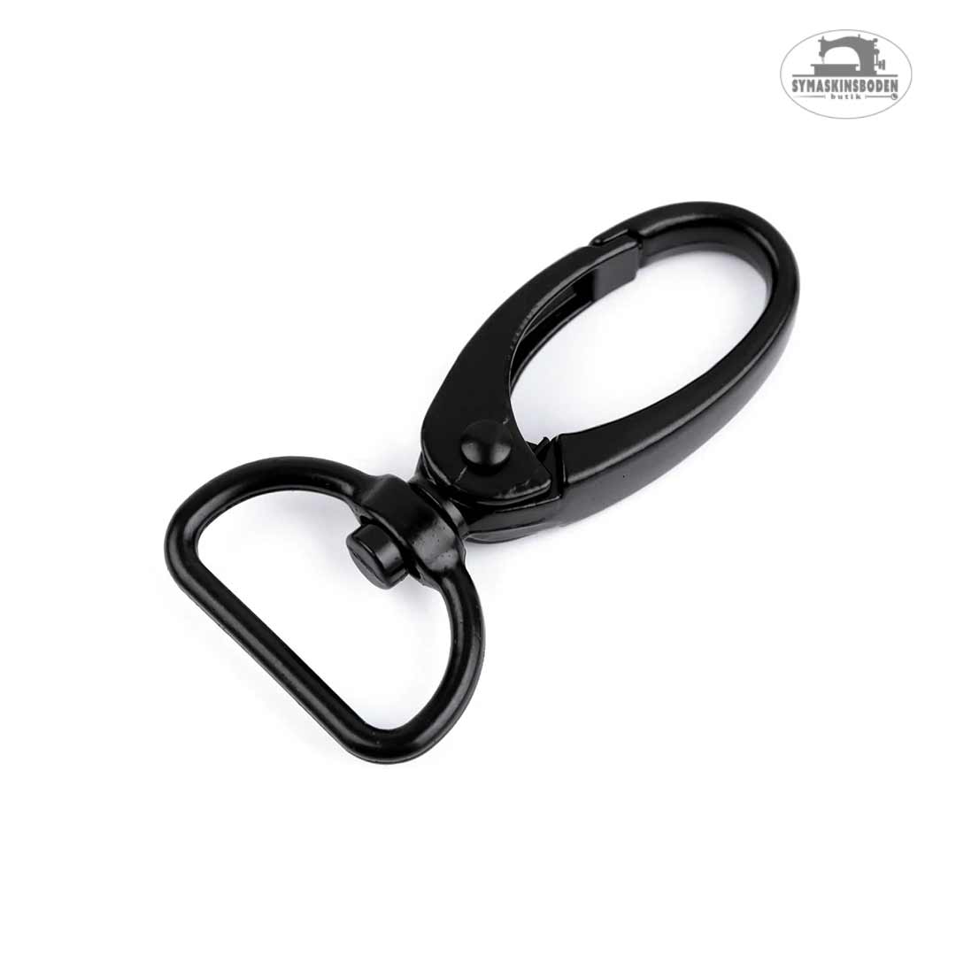 Karbinhake i metall till handtag, axlremmar och band. Passar till band med bredden 20 mm. Yttermått: 24 x 50 mm. Hakbreddd 5 mm