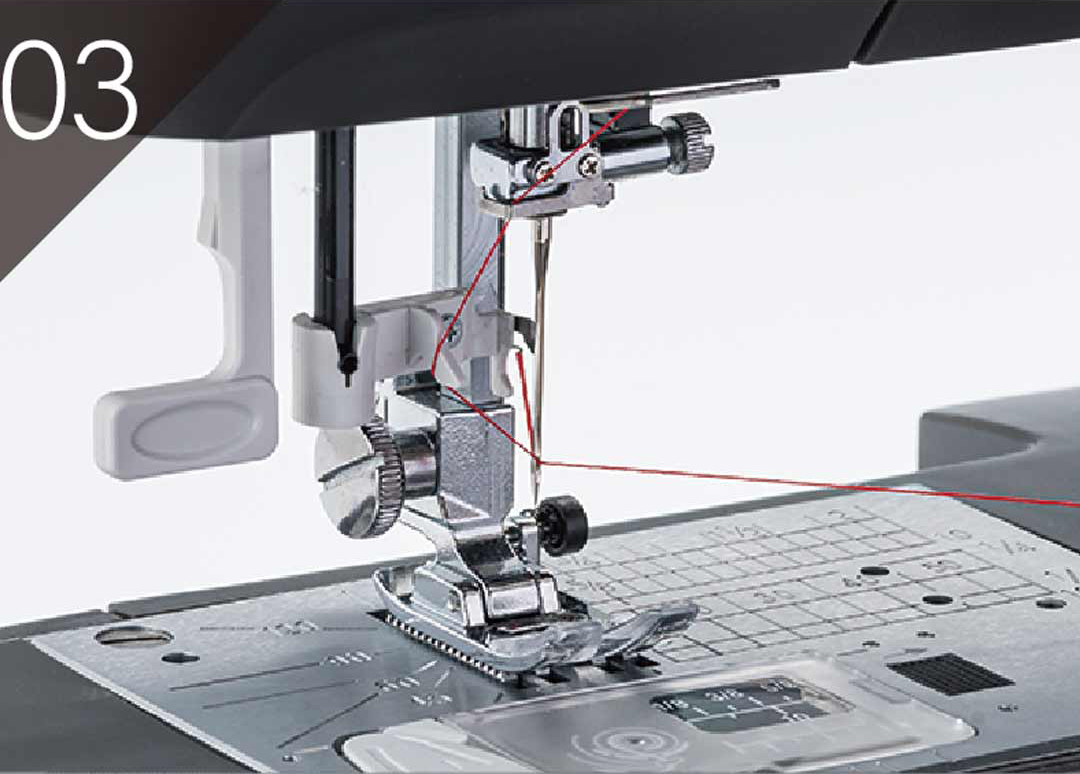 Att trä nålen är snabbt och enkelt med bara en hand. Nålträdaren stannar i det nedre läget, vilket gör den enkel att använda och låter dig trä nålen snabbt.