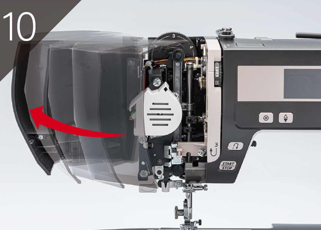 Sidokåpan kan enkelt öppnas vilket underrlättar underhåll och rengöring av vitala delar i syhuvudet.