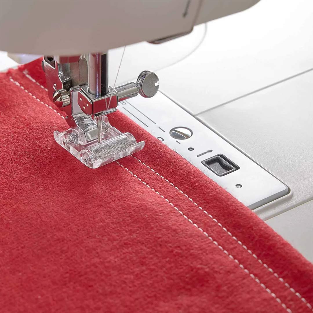 Rullpressarfoten passar väl för material som annars fastnar vid användning av en metallpressarfot, såsom skinn, vinyl, vaxduk och liknande. Hjulen på rullpressarfoten erbjuder inget motstånd, vilket underlättar frammatningen av materialet. Den är också idealisk för tjocka stickade tyger.