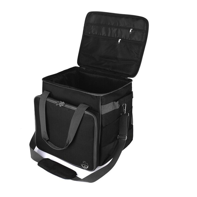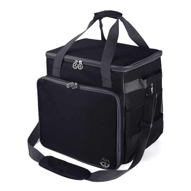 Skydda din fina overlockmaskin med en vadderad väska så att den inte skadas. Axelrem och bärhandtag så du kan variera hur du bär den. Har du tillbehör och sybehör med dig så har väskan flera praktiska förvaringsfickor där sådan får plats. Stor ytterficka samt invändiga förvaringsplatser.