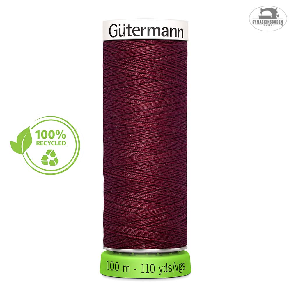 Vanlig sytråd i polyester i fin Gütermann-kvalitet som är tillverkad från återvunna PET-flaskor. Ett miljövänligt val av sytråd.