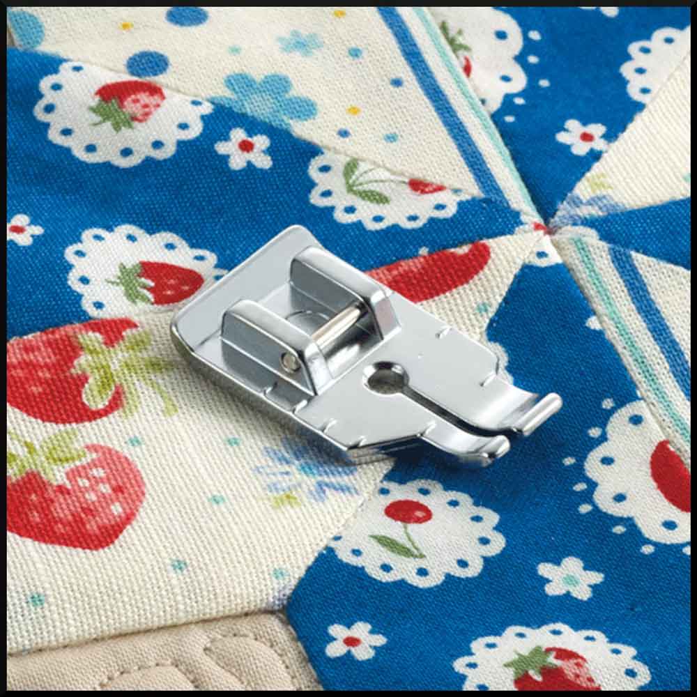 Pressarfoten ger från nålen till pressarfotens högra kant en sömsmån på 6,35 mm, eller 1/4 inch.