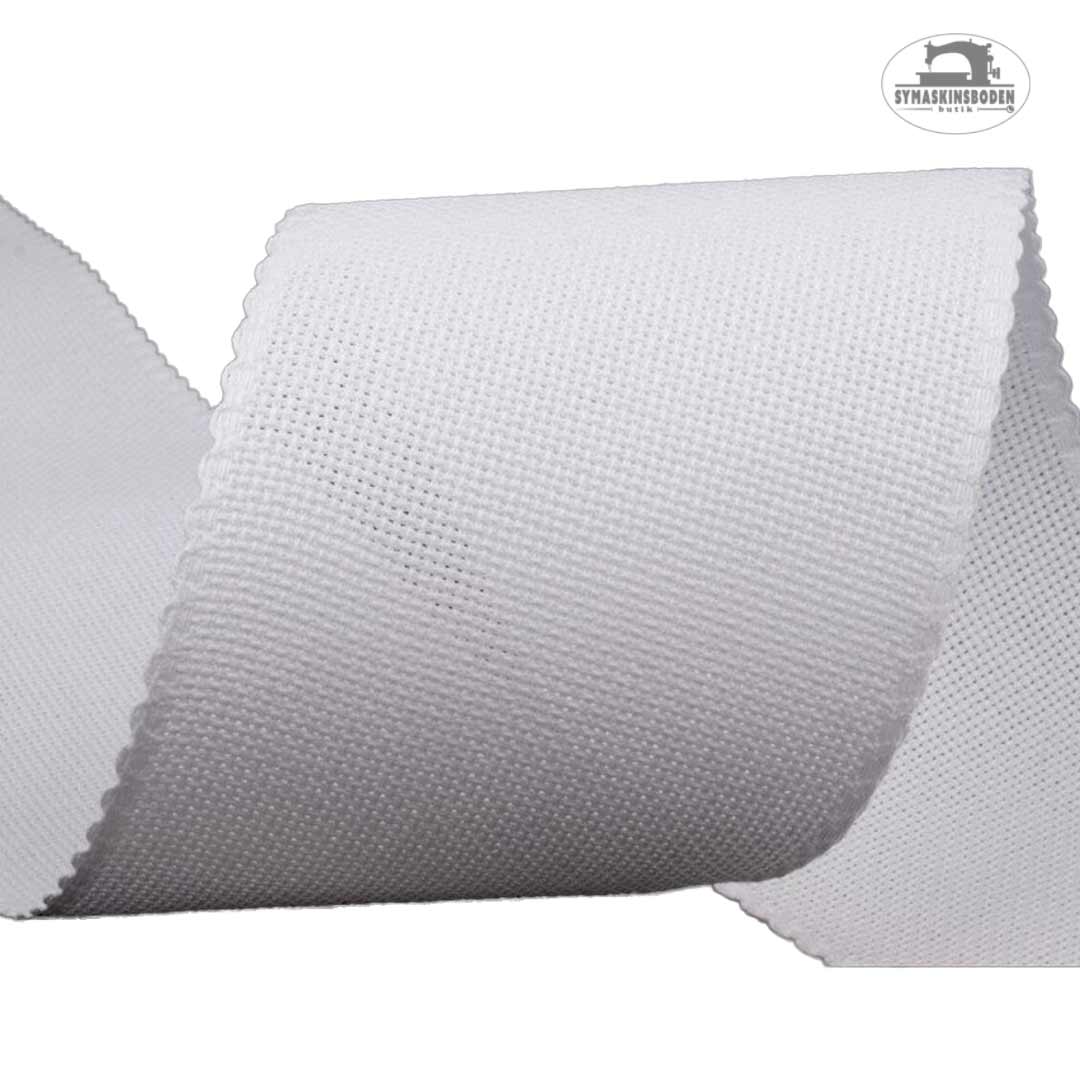 Band att brodera korsstygn på som är 5 cm brett och har en fin picotkant (små bågar). Storleken på rutorna är 6 pts/cm eller 16 ctc. Bandet är väldigt mjukt och följsamt och kan därför sättas på allt från kläder, gardiner, dukar, kuddar och även användas för att brodera bokmärken. Här är det bara fantasin som sätter gränser! Bandet köps på metervara och du kan därför själv välja hur lång bit du vill ha.