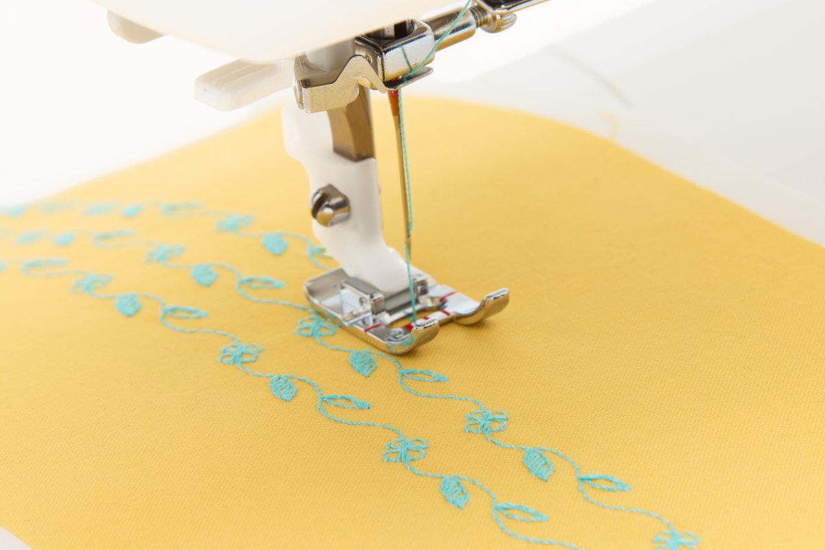 Ger dig information om bästa val av söm, trådspänning, pressarfot och pressarfotstryck för olika sömnadstekniker.