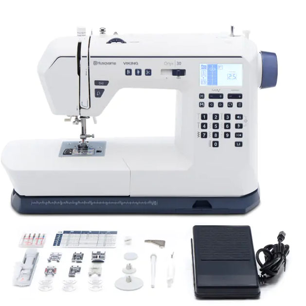 Onyx-familjen utökas med en s.k. elektronisk symaskinsmodell som heter Onyx 30. Lagom avancerad för dig som vill ha en lättanvänd symaskin med inställningar som är enkla att hantera. Men du vill inte ha för många finesser. Med Onyx 30 så får du lite fler sömmar för olika material, automatiskt trådklipp, nålstoppsläge upp/ner, knapp för att sy utan fotreglage samt en slider för steglös hastighetsinställning.