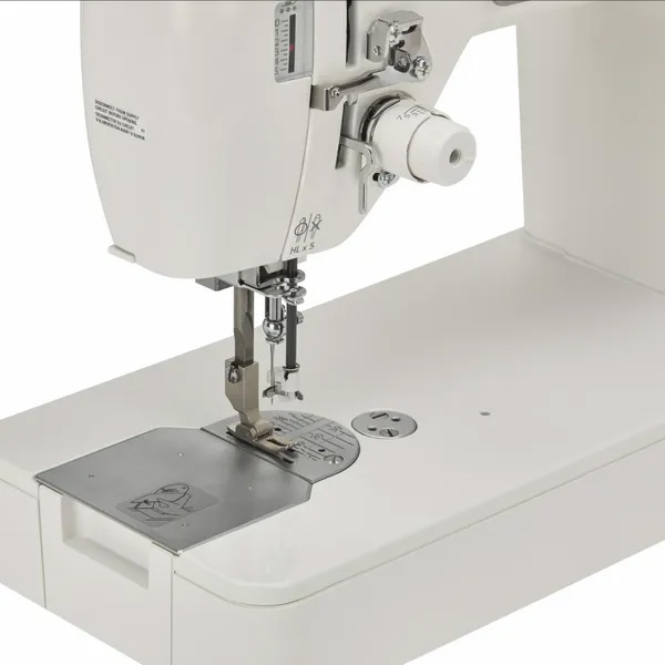 Förstärkt mekanik: Utrustad med en ytterligare förstärkt nålstång och en öppningsbar sidokåpa för enklare underhåll, rengöring och smörjning.