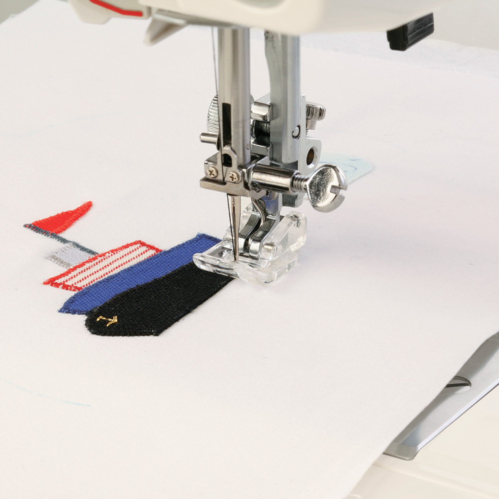 Kort applikationsfot är att föredra vid applicering i snäva svängar. Eftersom pressarfoten är kort så är den mycket lättmanövrerad och det går enkelt att styra sömmen dit där du vill ha den.