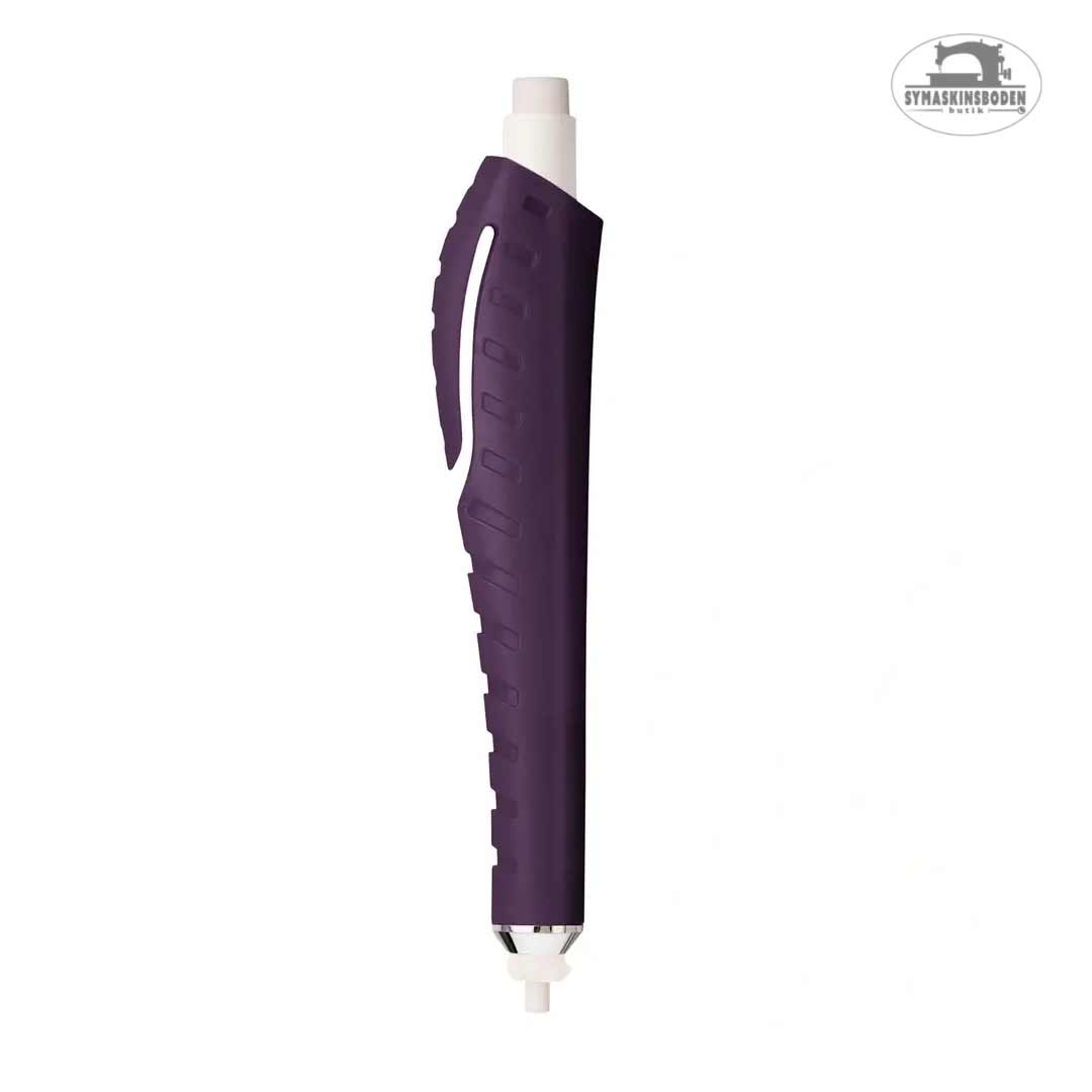 Den här kritpennan är perfekt för dig som gillar att markera på tyg med kritor men också vill få mer kontrollerade streck. Med pennan får du 17 stift, 9 vita och 8 i olika färger, samt en pennvässare så att du kan få en bra tipp på stiften. Stiften byts precis som på en vanlig stiftpenna, genom att ta bort toppen av pennan.