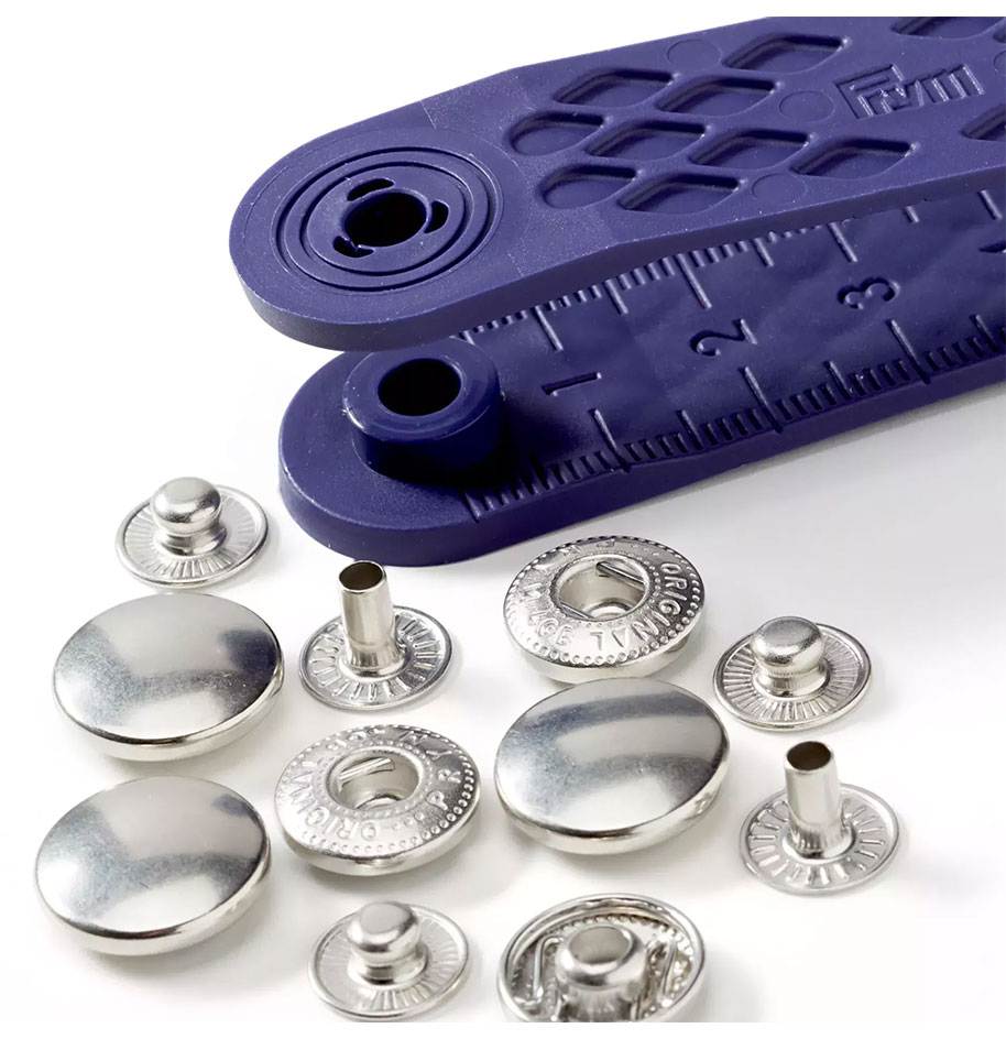 Ge dina syprojekt en proffsig touch med dessa tryckknappar från Prym. Knapparna nitas fast genom tyget och passar till bland annat jackor, klänningar, kjolar och väskor. Knapparna har en blank silverfärgad yta.
