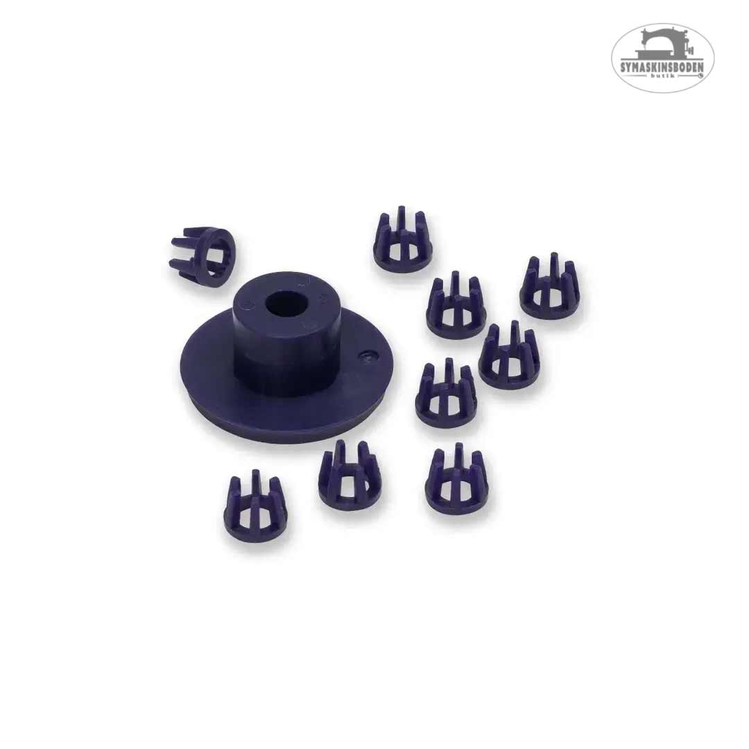 Har du en Prym Vario Creative Tool och har tappat bort eller slitit ut några av delarna? Då hittar du reserver i den här produkten! Förpackningen innehåller 9 verktygshållare som sätts på de olika verktygen för att hålla de på plats i Creative Tool, och en höjd kompensator. Delarna är gjorda i plast av hög kvalité.