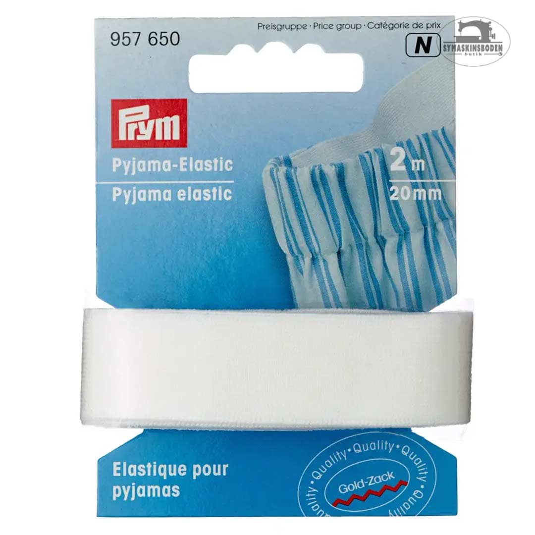 Pryms pyjamasresår är en extra mjuk och tunn resår. Passar dels till pyjamas och myskläder men också för barn och den som är extra känslig. Gummibandet är 20mm brett och säljs på förpackning om 2m. Den här resåren har OEKO-TEX Standard 100.