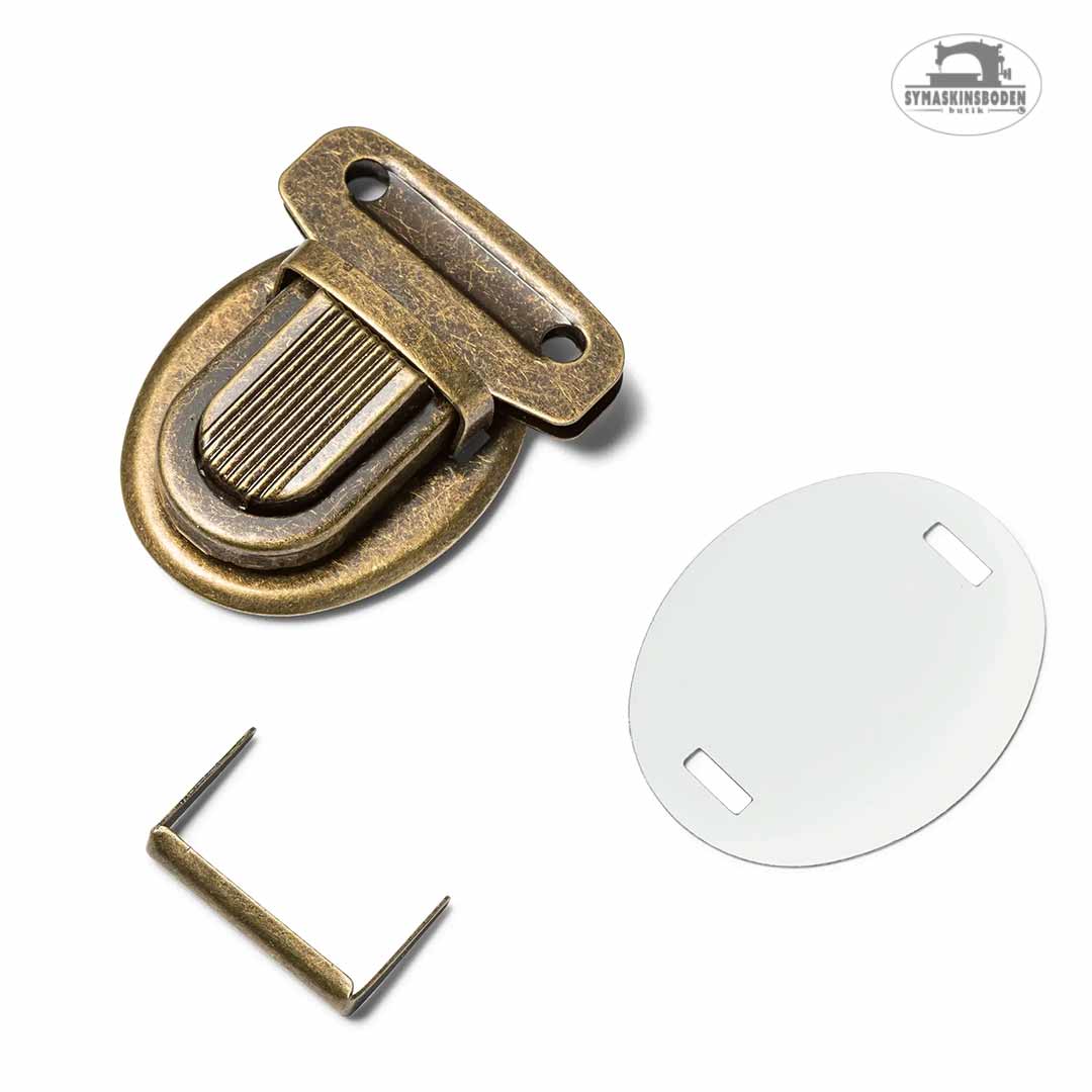 Istickslås i antik mässing till väskor, plånböcker m.m.