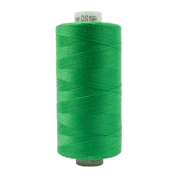 En lågpristråd i acceptabel kvalitet som fungerar bra för vanlig sömnad i symaskin och i overlockmaskin. 100% polyester i många olika färger på spolar om 1000 meter.